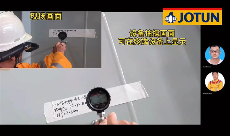 在這個(gè)“防疫常態(tài)化”的時(shí)代,出差已經(jīng)不再像以前說(shuō)走就能走了,施工現(xiàn)場(chǎng)的緊急情況無(wú)法及時(shí)處理,輕則影響工期,重則影響工程質(zhì)量,后續(xù)隱患無(wú)窮。佐敦為此引進(jìn)新科技——頭戴式AI計(jì)算機(jī),現(xiàn)場(chǎng)人員走到哪里,后端人員就能看到哪里,涂層檢查、遠(yuǎn)程指導(dǎo)、現(xiàn)場(chǎng)勘驗(yàn)、附著力測(cè)試、線上培訓(xùn)等都能即時(shí)實(shí)現(xiàn),有效提高了服務(wù)的時(shí)效性,更是降低了客戶(hù)與佐敦的工作成本。